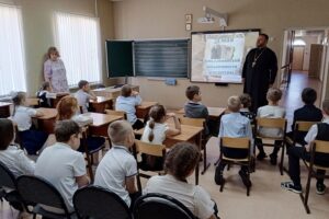 23 мая в ЧОУ «Православная начальная школа им. прп. Сергия Радонежского г. Буденновска» прошёл общешкольный классный час, посвящённый Дню славянской письменности и культуры. Мероприятие подготовила учитель 4-го класса Наталья Змиевская. Она рассказала о жизни святых равноапостольных братьев Кирилла и Мефодия, о создании ими первой славянской азбуки и о просветительской деятельности среди славянских народов. Рассказ сопровождался красочной презентацией. Дети читали высказывания на церковнославянском языке и объясняли их смысл. Ученики 3-го класса рассказали стихи о святых братьях Кирилле и Мефодии. А все вместе дети исполнили гимн, посвященный первоучителям словенским. В завершении мероприятия к ученикам обратился директор школы протоиерей Иоанн Кузнецов. Он рассказал о том, какой след в душе человека может оставить печатное духовное слово и какой неисчерпаемый источник мудрости и благодати представляет собой православная книга.